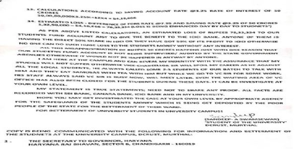 का आरोप छात्र ने राज्यपाल को भेजे पत्र में लगाते हुए विश्वविद्यालय के कुलपति, कुलसचिव