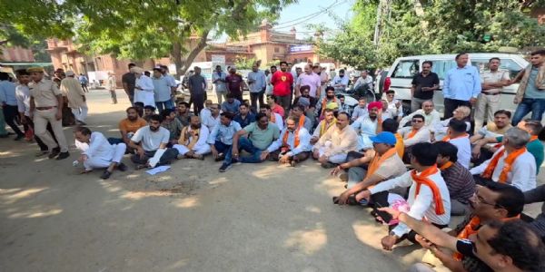 अलवर, 11 अक्टूबर (हि.स.)। शहर के उद्योग नगर थाना क्षेत्र के बख्तल की चौकी पर विशेष समुदाय के बदमाशों द्वारा एक युवक करण की हत्या के मामले में सामान्य अस्पताल में शनिवार को हिन्दू संघटनों ने विरोध प्रदर्शन किया। विश्व हिंदू परिषद, बजरंग दल और कई समाज के लोग आज अस्पताल में धरने पर बैठ गए। इस दौरान मृतक युवक के पिता सहित अन्य परिजनों का रो रोकर बुरा हाल था। लोग उन्हें संभाल रहे थे। मौके पर बड़ी संख्या में लोग एकत्रित हो गए। पुलिस और प्रशासन सहित कई जनप्रतिनिधि भी मौके पर मौजूद रहे। इस दौरान एक कमेटी बनाकर आठ मांगे प्रशासन के सामने रखी गई। मांग में परिवार की सुरक्षा, आश्रित में से एक को सरकारी नौकरी, आरोपितों की जल्द गिरफ्तारी, मुआवजा, आरोपितों के अवैध निर्माण पर बुलडोजर चलाने सहित कई मांगे शामिल थी। मांगों पर आश्वासन मिलने के बाद धरना प्रदर्शन समाप्त हुआ। इस दौरान शव का मेडिकल बोर्ड से पोस्टमार्टम कराया गया। अस्पताल में विधायक सुखवंत सिंह, विश्व हिंदू परिषद के प्रेम सिंह राजावत, प्रेम गुप्ता, पूर्व विधायक ज्ञान देव आहूजा, पूर्व उप जिला प्रमुख रमन गुलाटी, जिलाध्यक्ष कांग्रेस योगेश मिश्रा सहित सर्व समाज के लोग मौजूद रहे।