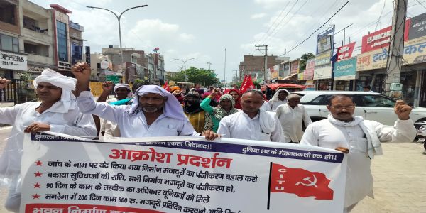 जींद : निर्माण मजदूरों ने बंद किए गए पंजीकरण को बहाल करने की मांग को लेकर प्रदर्शन किया
