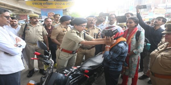 जिलाधिकारी कपिल सिंह एवं पुलिस अधीक्षक श्रद्धा नरेन्द्र पाण्डेय ने विशेष अभियान के तहत नागरिकाें से यातायात नियमों के प्रति जागरूक करने और दुर्घटनामुक्त बनाने के लिए नमस्ते चौराहा, अकबरपुर में दोपहिया वाहन चालकों हेलमेट पनकर वाहन चलाने और यातायात नियमों का पालन करने के लिए प्रेरित किया।