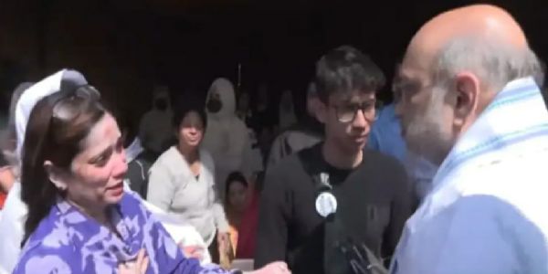 आंतकवादी हमले में मारे गए दिनेश मिरानिया की पत्नी और बच्चों से मिलकर अमित शाह ने दी सांत्वना