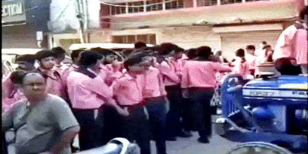 बल्लभगढ़ में स्कूल गेट बंद होने पर बच्चों का हंगामा, सड़क जाम; पुलिस ने कराया प्रवेश