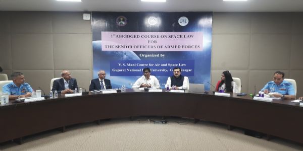 गांधीनगर, 08 सितंबर (हि.स.)। गुजरात नेशनल लॉ यूनिवर्सिटी (जीएनएलयू) ने सोमवार को सशस्त्र बलों के वरिष्ठ अधिकारियों के लिए विशेष रूप से तैयार किए गए पहले संक्षिप्त अंतरिक्ष कानून पाठ्यक्रम का शुभारंभ किया। यह पहल देश में अंतरिक्ष कानून शिक्षा के क्षेत्र में एक महत्वपूर्ण मील का पत्थर साबित हुई है।