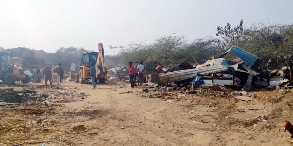 गुरुग्राम पुलिस ने अवैध झुग्गियों पर बुलडोजर चला नशीले पदार्थों के अड्डों को किया ध्वस्त