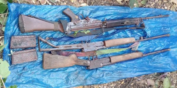 बरामद हथियारों का विवरण: एसएलआर 7.62 एमएम ऑटोमेटिक राइफल 1 नग (सिलिंग सहित), एसएलआर की खाली मैग्जीन 2 नग, 12 बोर बंदूक 1 नग (सिलिंग सहित), भरमार बंदूक 1 नग (सिलिंग सहित), 1 नग एके -47 एवं 1 नग 12 बोर हथियार बरामद किया गया है।