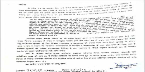 नाजायज कब्जाधारियों को दिए गए नोटिस भी बिना पैमाइश रिपोर्ट के जारी किए गए थे। लंबे समय तक अवैध कब्जों के विरुद्ध नियमानुसार कार्रवाई न करना भी सरपंच की कार्यशैली को संदिग्ध बताता है। इन बिंदुओं के आधार पर दो सितंबर 2025 को सरपंच को कारण बताओ नोटिस जारी किया गया। पांच सितंबर को दिए गए उनके जवाब को असंतोषजनक पाया गया। व्यक्तिगत सुनवाई के लिए 27 अगस्त व 30 सितंबर 2025 को अवसर दिया गया, परंतु वे कोई ठोस सबूत प्रस्तुत नहीं कर सके। प्रशासन ने माना कि आरोप गंभीर हैं और सरपंच का पद पर बने रहना जनहित में उचित नहीं है। इसलिए सरपंच मनोज कुमार को तत्काल प्रभाव से निलंबित कर दिया गया है। उन्हें निर्देश दिया गया है कि ग्राम पंचायत से संबंधित सभी चल-अचल संपत्ति का चार्ज बहुमत वाले पंच को सौंपें। साथ ही, मामले की नियमित जांच के लिए अतिरिक्त उपायुक्त नारनौल को जांच अधिकारी नियुक्त किया गया है। आदेश तत्काल प्रभाव से लागू कर दिए गए हैं।