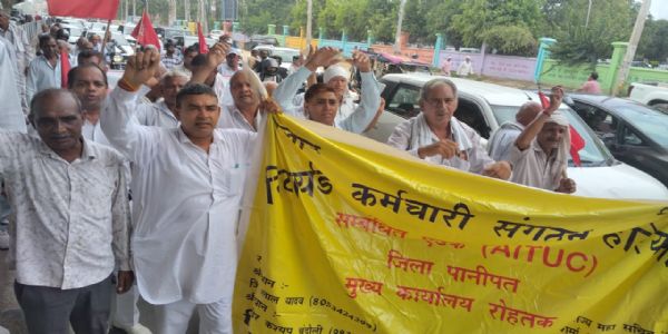 एटक कार्यालय भगत सिंह स्मारक से एटक से सम्बंधित यूनियनों दि वूल खड्डी एंड टैक्सटाइल वर्कर्स यूनियन, दि इंजीनियरिंग एंड टैक्सटाइल वर्कर्स यूनियन, रोडवेज कर्मचारी यूनियन हरियाणा, बी बी एम बी कर्मचारी यूनियन, रिटायर कर्मचारी संगठन हरियाणा एवं हरियाणा किसान सभा हरियाणा खेत मजदूर यूनियन के कार्यकर्ताओं ने दरियाव सिंह कश्यप, रणबीर शर्मा, माम चंद सैनी, प्रकाश कश्यप, आदि के नेतृत्व में मुख्य डाकघर के सामने हड़ताल कर रहे कर्मचारियों को समर्थन व्यक्त करते हुए किसान भवन,असंध रोड, लाल बत्ती संविधान चौंक ,पुराना बस स्टैंड होते हुए उपायुक्त कार्यालय तक जलूस निकाला।