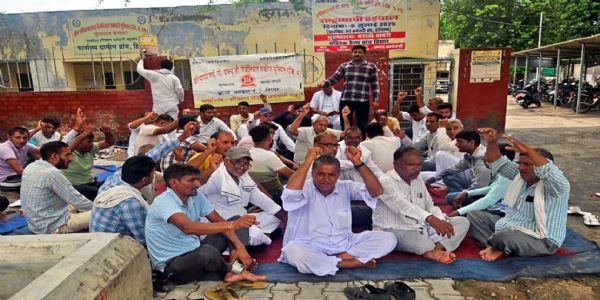 हिसार : जनस्वास्थ्य विभाग कर्मचारियों ने शुरू किया अनिश्चितकालीन धरना