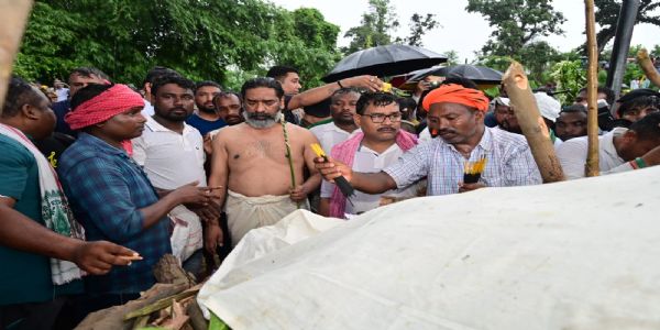 झारखंड के पुरोधा दिशोम गुरू शिबू सोरेन मंगलवार अपने पैतृक गांव रामगढ जिले के नेमरा में पंचतत्व में विलिन हो गए। राजकीय सम्मान के साथ उनका अंतिम संस्कार किया गया। हेमंत सोरेन ने पिता शिबू सोरेन को मुखाग्नि दी। दिशोम गुरु की अंतिम विदाई में हर किसी की आंखें नम थीं।