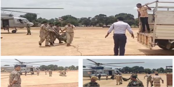 नम्बाला केशव राव उर्फ बशव राजू सहित 27 नक्सलियों के शव हेलीकॉप्टर से छत्तीसगढ़ के नारायणपुर लाए गए
