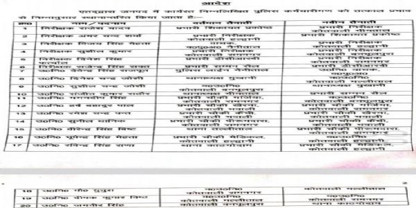 उपनिरीक्षक वीरेंद्र बिष्ट को तल्लीताल से हटाकर चौकी पीरूमदारा भेजा गया है। भूपेन्द्र मेहता को मेडिकल चौकी हल्द्वानी में वरिष्ठ उपनिरीक्षक के रूप में और रविंद्र राणा को काठगोदाम से हटाकर मेडिकल चौकी प्रभारी नियुक्त किया गया है। वरिष्ठ उपनिरीक्षक मोहम्मद यूनुस अब कोतवाली मल्लीताल में और उपनिरीक्षक दीपक बिष्ट रामनगर कोतवाली में अपनी सेवाएं देंगे। उपनिरीक्षक जगवीर को बनभूलपुरा से स्थानांतरित कर थाना काठगोदाम में तैनात किया गया है।
