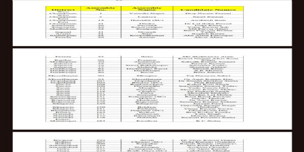 सुरसंड - उषा किरणरूननी सैदपुर - विजय कुमार साह बेनीपट्टी - मो. परवेज आलम निर्मली - राम प्रवेश यादवसिकटी - रागहीब बबलूकोचाधामन - अबू अफान फार्रूखअमौर - अफरोज आलम बाईसी - मो. शहनवाज आलम प्राणपुर - कुणाल निषादआलमनगर - सुबोध कुमार सुमन सहरसा - किशोर कुमार सिमरी बख्तियारपुर - सुरेन्द्र यादव महिषी - समीम अख्तर दरभंगा ग्रामीण - आरके मिश्रा केओटी - बिलटू सहनी मीनापुर - तेज नारायण सहनी मुजफ्फरपुर - डॉ. अमल कुमार दास