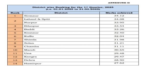 अपराध और अपराध ट्रैकिंग नैटवर्क सिस्टम रैंकिंग में सिरमौर पुलिस प्रदेश में प्रथम