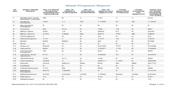 मंत्रालय के अनुसार, राज्यों के साथ लगातार समन्वय, समीक्षा बैठकों, प्रशिक्षण कार्यक्रमों और सचिव-स्तरीय हस्तक्षेपों के चलते अंतिम चरण में रिकॉर्ड स्तर पर वक्फ संपत्तियों का डेटा पोर्टल पर अपलोड किया गया।