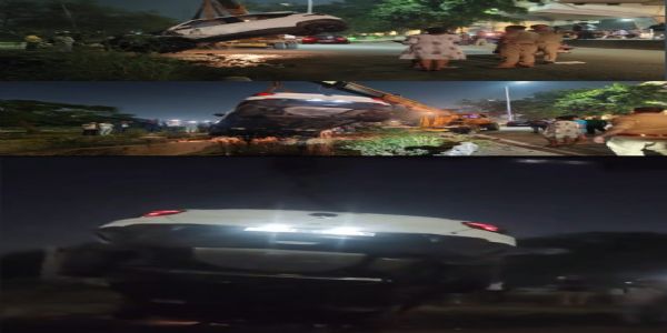 सेक्टर-24 थाना प्रभारी ने बताया कि शनिवार रात करीब 9:30 बजे के करीब एक टाटा पंच कार उल्टी दिशा से सर्विस रोड पर आ रही थी। अनियंत्रित होकर कार नाले में जा गिरी। हादसे में कार मे सवार विवेक नयन पुत्र विकास सिंह व एक महिला को मामूली चोट लगी है। उन्होंने बताया कि कार को हाइड्रा की सहायता से बाहर निकलवाया गया है। कुछ देर के लिए यातायात बाधित हुआ था। उन्होंने बताया कि यातायात को सामान्य रूप से संचालित कर दिया गया है। इस बीच घटनास्थल पर लोगों की भारी भीड़ जुट गई। लोगों ने पुलिस को सूचना दी। इस घटना की वीडियो सोशल मीडिया पर जमकर वायरल हो रही है।