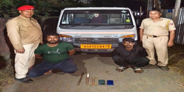 गुवाहाटी, 6 नवंबर दिसंबर (हि.स.)। गुवाहाटी की बशिष्ठ पुलिस ने दो शातिर चोरों को चोरी की वारदात को अंजाम देने से पहले धर दबोचा। पुलिस ने शनिवार को बताया कि बशिष्ठ पुलिस स्टेशन की एक टीम ने बेलतला कॉलेज रोड के पास बनगांव से दोनों शातिर चोरों को पकड़ा, जो एक मैजिक गाड़ी में घूम रहे थे। तलाशी लेने पर चोरी करने में इस्तेमाल होने वाले औजार और दो चोरी के मोबाइल फोन बरामद हुए और उन्हें ज़ब्त कर लिया गया।