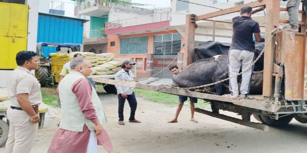 तेज़ी से चलाया जा रहा है। ककरोई रोड पर निगम टीम ने चार नंदी पकड़कर उन्हें वाहन में