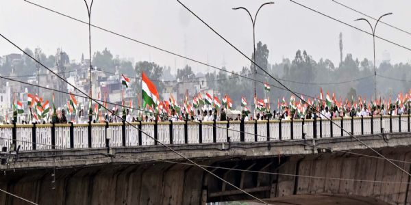 निर्वाचित प्रतिनिधियों, नागरिक समाज के सदस्यों, छात्रों और शिक्षकों ने “भारत माता की जय“ और “वंदे मातरम“ का नारा लगाते हुए तिरंगा झंडा उठाया जो राष्ट्रीय गौरव की प्रबल भावना को दर्शाता है।