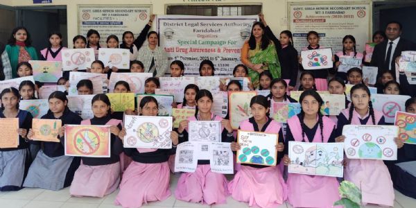 फरीदाबाद, 16 दिसंबर (हि.स.)। जिला विधिक सेवा प्राधिकरण फरीदाबाद द्वारा ड्रग फ्री हरियाणा मिशन के अंतर्गत जिला फरीदाबाद के सभी सरकारी विद्यालयों में नशा विरोधी पोस्टर मेकिंग कार्यक्रम का आयोजन किया गया। इसी क्रम में मंगलवार को यह कार्यक्रम राजकीय कन्या वरिष्ठ माध्यमिक विद्यालय, एनआईटी नंबर-3, फरीदाबाद में भी आयोजित किया गया। यह कार्यक्रम जिला एवं सत्र न्यायाधीश एवं चेयरमैन जिला विधिक सेवा प्राधिकरण संदीप गर्ग के कुशल मार्गदर्शन में आयोजित किया गया और सीजेएम एवं जिला विधिक सेवा प्राधिकरण की सचिव रितु यादव की उपस्थिति एवं पर्यवेक्षण में संपन्न हुआ। कार्यक्रम के दौरान छात्राओं ने उत्साहपूर्वक भाग लेते हुए नशे के दुष्प्रभावों पर आधारित पोस्टर तैयार किए। इन पोस्टरों के माध्यम से नशे से होने वाले शारीरिक, मानसिक एवं सामाजिक नुकसान को दर्शाया गया। इस अवसर पर सीजेएम रितु यादव ने छात्राओं को नशे के दुष्प्रभावों के बारे में जानकारी दी और बताया कि नशे का सेवन व्यक्ति के स्वास्थ्य, भविष्य एवं पूरे परिवार को बर्बाद कर देता है। उन्होंने छात्राओं को नशे से दूर रहने तथा समाज में नशा मुक्त संदेश फैलाने के लिए प्रेरित किया। कार्यक्रम में विद्यालय की प्रधानाचार्य एवं शिक्षकगण के साथ रविंदर गुप्ता, मुख्य रक्षा अधिवक्ता भी उपस्थित रहे। कार्यक्रम का उद्देश्य विद्यार्थियों में नशे के प्रति जागरूकता फैलाना एवं उन्हें स्वस्थ एवं उज्ज्वल भविष्य की ओर प्रेरित करना रहा।