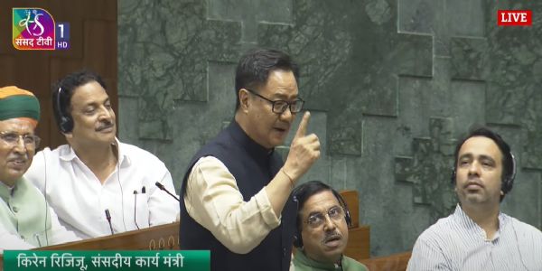 कागज़ फाड़कर चेयर पर फेंकना शर्मनाक : लोकसभा में विपक्ष के हंगामे पर किरेन रिजिजू का तीखा हमला