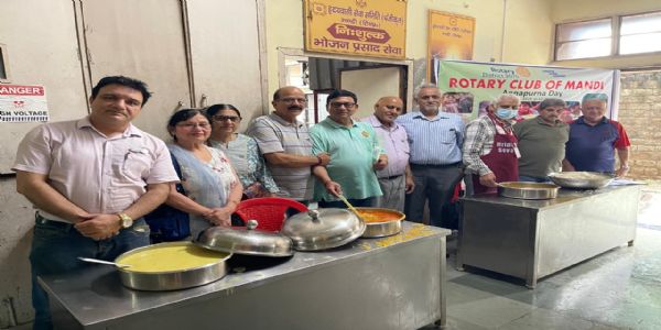 मंडी, 03 जुलाई (हि.स.)। रोटरी क्लब ऑफ मंडी ने रोटेरियन कौशलेश कपूर प्रधान की अध्यक्षता में अन्नपूर्णा दिवस मनाया। इस मौके पर जोनल अस्पताल मंडी में रोगियों के साथ आए हुए तीमारदारों को हृदयवासी संस्था जो अस्पताल में दोपहर के भोजन की सेवा चलाती है के साथ सहयोग करके खाना खिलाया।