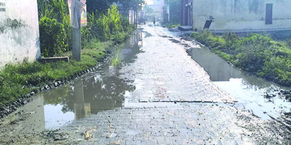 भोवापुर-चमरावल मुख्य मार्ग पर जलभराव से ग्रामीण बेहाल, नालियों के निर्माण की उठी मांग