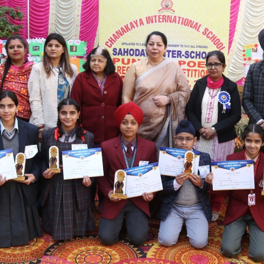 जालंधर| सहोदय पंजाबी कविता वाचन प्रतियोगिता का आयोजन चाणक्य इंटरनेशनल स्कूल में किया गया। इस कार्यक्रम में क्षेत्र के 24 प्रतिष्ठित स्कूलों के विद्यार्थियों ने बड़े उत्साह के साथ भाग लिया। कार्यक्रम की शुरुआत स्कूल के विद्यार्थियों द्वारा शबद गायन से की गई। जिसके बाद कक्षा आठवीं की छात्रा दिलप्रीत कौर ने अपनी स्वयं-रचित कविता प्रस्तुत कर सबका मन मोह लिया। कार्यक्रम के आरंभ में स्कूल की प्रिंसिपल बरिंदर कौर ने प्रतियोगिता में भाग लेने वाले विद्यार्थियों का उत्साहवर्धन किया और उन्हें अपनी पंजाबी मातृभाषा को उसका सम्मान देने के लिए प्रेरित किया। प्रतियोगिता के दौरान बच्चों ने पंजाबी कविताएं प्रस्तुत कीं। प्रत्येक प्रस्तुति ने पंजाबी साहित्य की विरासत को खूबसूरती से उजागर किया। जज पैनल में डॉ. जसविंदर कौर और लेखक इकवाक सिंह ने बच्चों को अपनी स्वयं-लिखित रचनाएं लिखने और प्रस्तुत करने के लिए प्रेरित किया। प्रतियोगिता में प्रथम स्थान गरिमा स्वामी संत दास पब्लिक स्कूल, जालंधर, द्वितीय स्थान रश्मिंदर सिंह बावा लालवानी पब्लिक स्कूल, कपूरथला तथा तृतीय स्थान जसलीन कौर कमला नेहरू पब्लिक स्कूल, फगवाड़ा ने प्राप्त किया। एप्रिसिएशन अवॉर्ड अगमजोत सिंह संत रघुबीर सिंह एम्स स्कूल, जालंधर और जसलीन कौर शिव ज्योति पब्लिक स्कूल, जालंधर को मिला। प्रिंसिपल ने विजेताओं को सम्मानित किया।