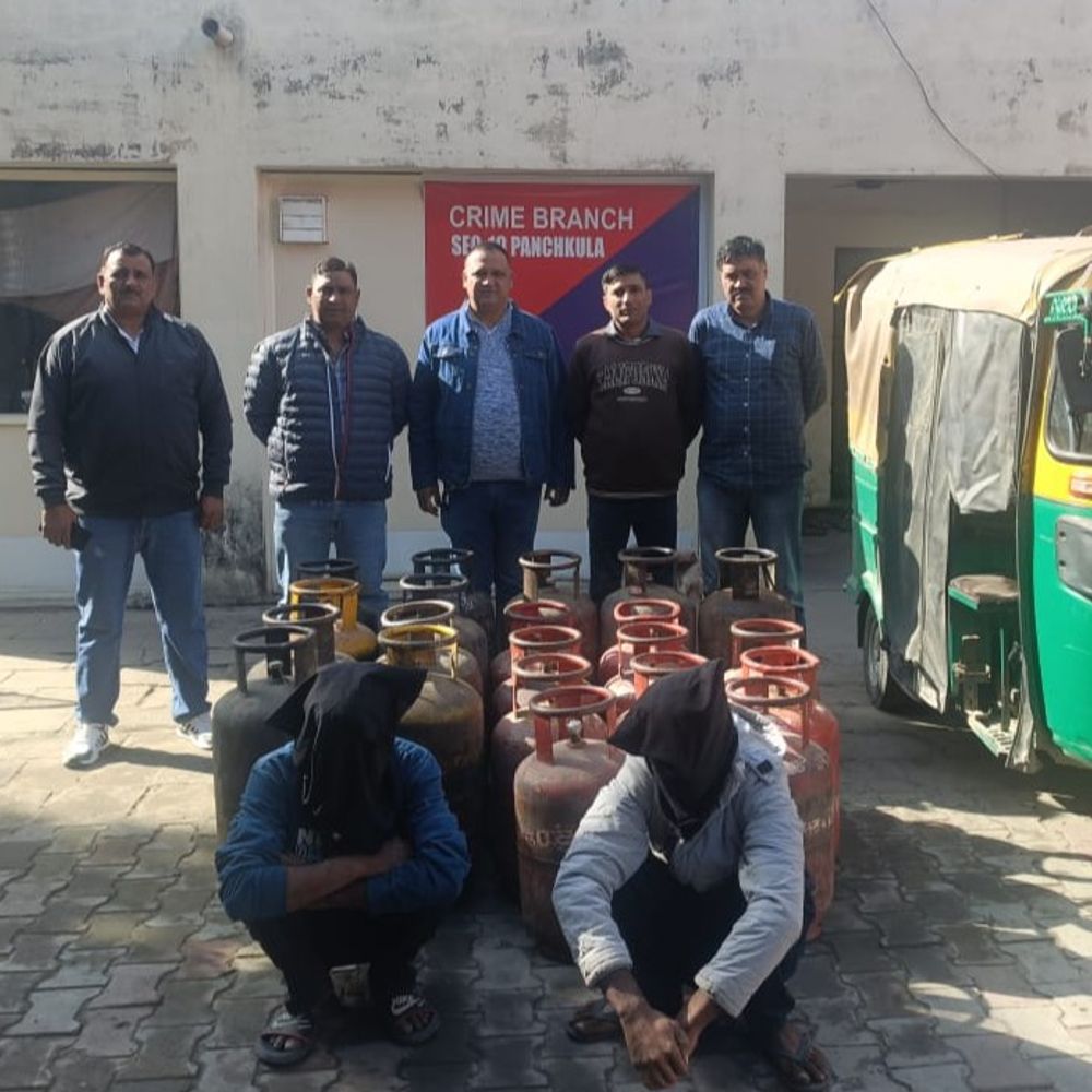 पंचकूला पुलिस ने पकड़ा गैस सिलेंडर चोर गिरोह:2 गिरफ्तार, 21 सिलेंडर और वारदात मे प्रयोग ऑटो बरामद, पंजाब के रहने वाले