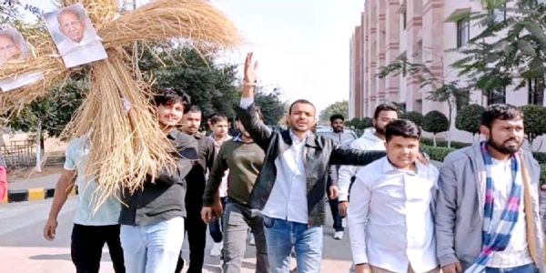जींद: किसान छात्र एकता संगठन व एनएसयूआई ने मिलकर फूंका सफीदों विधायक का पुतला