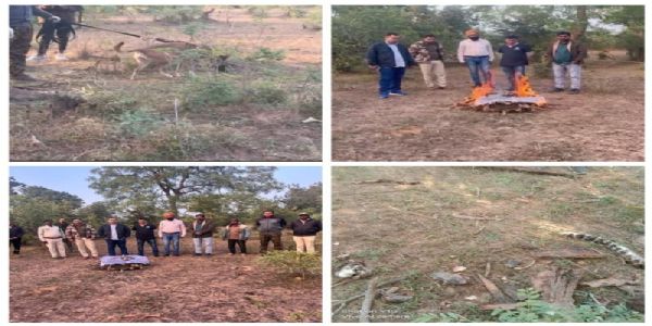 निर्धारित प्रक्रिया अनुसार शव दहन की कार्यवाही क्षेत्र संचालक, नायब तहसीलदार , एन.टी.सी.ए के प्रतिनिधि/वन्यजीव विशेषज्ञ व अन्य की उपस्थिति में की गई। उपरोक्त समस्त कार्यवाही के फोटोग्राफी एवं वीडियोग्राफी की गई है। प्रकरण में वन अपराध प्रकरण दर्ज कर अग्रिम कार्यवाही जारी है।