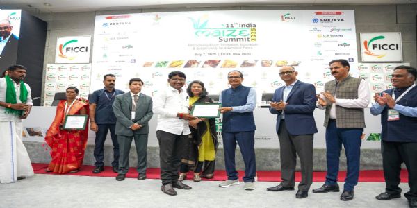 केंद्रीय कृषि एवं किसान कल्याण और ग्रामीण विकास मंत्री शिवराज सिंह चौहान ने सोमवार को दिल्ली में भारतीय वाणिज्य एवं उद्योग महासंघ (फिक्की) द्वारा आयोजित 11वें भारत मक्का समिट-2025 का शुभारंभ किया। इस अवसर पर शिवराज सिंह ने मक्का उत्पादन के क्षेत्र में नवाचार एवं उत्कृष्ट योगदान देने वाले किसानों को सम्मानित किया।