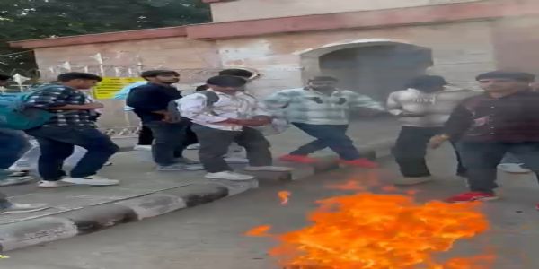 छात्र संगठनों ने एमडीयू कुलपति के खिलाफ विरोध प्रदर्शन कर फूंका पुतला