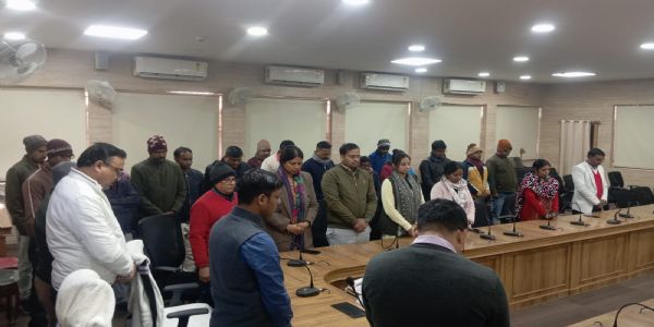 रामगढ़, 06 जनवरी (हि.स.)। पतरातू अंचल के क्लर्क के निधन पर हुई मंगलवार को समाहरणालय में शोक सभा का आयोजन किया गया। पतरातू अंचल के उच्च वर्गीय लिपिक मनोज उरांव का आकस्मिक निधन हो गया था। इस दौरान डीडीसी आशीष अग्रवाल सहित अन्य जिला स्तरीय वरीय अधिकारियों, अधिकारियों एवं कर्मियों के द्वारा 2 मिनट का मौन रखकर दिवंगत आत्मा की शांति के लिए प्रार्थना की गयी।