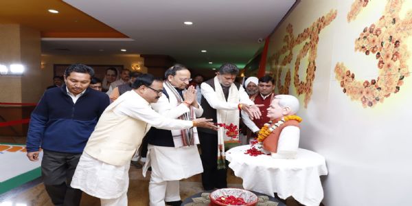 रायपुर 30 दिसंबर (हि.स.)। भारतीय जनता पार्टी के राष्ट्रीय महामंत्री अरुण सिंह ने आज मंगलवार काे भाजपा प्रदेश कार्यालय कुशाभाऊ ठाकरे परिसर में स्मृति मंदिर में भारत रत्न पूर्व प्रधानमंत्री श्रद्धेय अटल बिहारी वाजपेयी सहित भाजपा के पितृ पुरुष कुशाभाऊ ठाकरे, डॉ. श्यामा प्रसाद मुखर्जी, पं. दीनदयाल उपाध्याय जी एवं राजमाता विजयाराजे सिंधिया को पुष्पांजलि अर्पित कर उन्हें नमन किया।