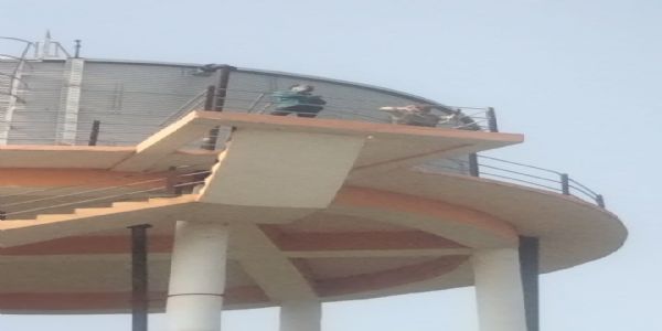भदोही : वेतन न मिलने से नाराज ऑपरेटर आत्मदाह के लिए पानी की टंकी पर चढ़ा