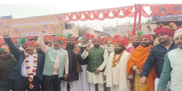 श्रीरामलला के 77वें प्राकट्य महोत्सव पर पूजित कलश और हनुमान जी महाराज के शाही निशान के साथ निकली भव्य शोभायात्रा