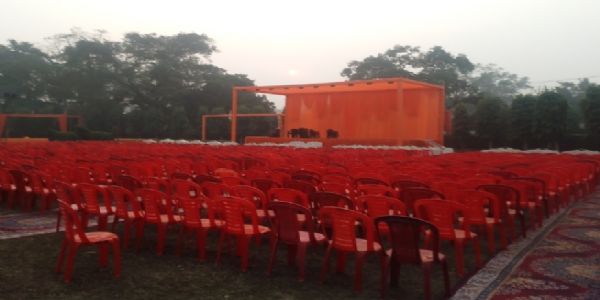 भाजपा के बूथ अध्यक्षों के सम्मेलन के लिए बनकर तैयार हुआ मंच