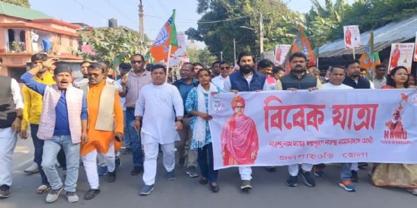 जलपाईगुड़ी, 12 जनवरी (हि. स.)। स्वामी विवेकानंद की 163वीं जयंती के अवसर पर सोमवार को राजगंज ब्लॉक में भारतीय जनता पार्टी के युवा मोर्चा की ओर से भव्य ‘विवेक यात्रा’ और ज्वाइनिंग कार्यक्रम का आयोजन किया गया। राजगंज विधानसभा युवा मोर्चा के नेतृत्व में यह पदयात्रा राजगंज कॉलेज मोड़ से शुरू होकर कालीनगर मोड़ पर जाकर संपन्न हुई।