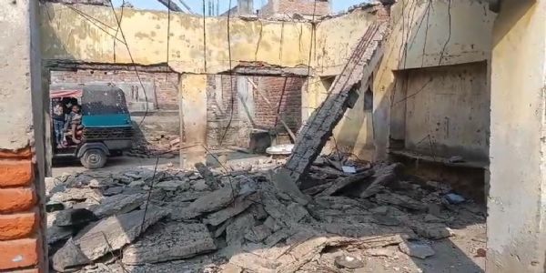 भर-भराकर गिरा जर्जर सामुदायिक चौपाल, मलबे में दबकर 4 लोग घायल