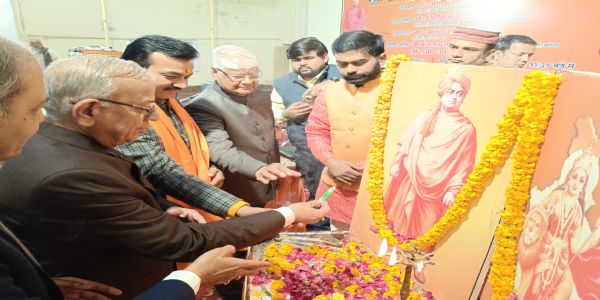 मुख्य अतिथि बीएचयू के पूर्व कुलपति प्रो. गिरीश चन्द्र त्रिपाठी ने कहा कि विवेकानंद के दर्शन में सम्पूर्ण विश्व एक परिवार की तरह है। विवेकानंद ने यह मार्ग दिखाया था कि भारतवर्ष में सभी एक दूसरे के पूरक हैं। भारत में विरोधी भी सही बात करता है तो वह भी ग्राह्य है। भारत को विश्वगुरू बनाने के लिए पारिवारिक मूल्य और नारी शक्ति का सम्मान होना चाहिए। सृष्टि को चलाने के तरीके को सनातन धर्म कहा गया है। जब भारत में सनातनी और अपने को हिन्दू कहने में लोग शर्म महसूस करने लगे थे, उस वक्त विवेकानंद ने कहा गर्व से कहो हम हिन्दू हैं। विवेकानंद ने भारतीय संस्कृति को पुर्नजीवित किया। आज कहीं न कहीं फिर से संकट सामने आ खड़ा हुआ है। ऐसे में विवेकानंद के दर्शन को अपनाने की जरूरत है। उन्होंने कहा कि पारिवारिक मूल्यों को बचाए रखने और नारी शक्ति का सम्मान करने से भारत का मस्तक विश्व में एक बार फिर से ऊँचा हो सकता है।