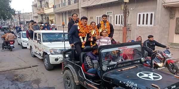 ऑल इण्डिया बॉल बैडमिन्टन महासंघ के संरक्षक जय प्रकाश व्यास ने बताया कि बीकानेर के इन तीनों खिलाड़ियाें का सभी बीकानेर वासियों एवं खिलाड़ियाें द्वारा बीकानेर रेल्वे स्टेशन से एल.एम. स्पोर्टस कॉम्पलेक्स तक उनका धूमधाम से बैंडबाजे के साथ स्वागत किया गया।
