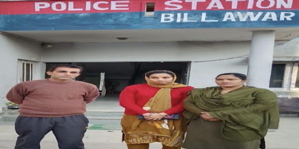 जानकारी के अनुसार बीते 02 जनवरी को जसवंत सिंह पुत्र राजिंदर निवासी देवल तहसील बिलावर जिला कठुआ ने बिलावर थाना में अपनी पत्नी नेहा राजपूत पत्नी उम्र- 30 वर्ष के लापता होने की लिखित शिकायत दर्ज कराई। शिकायत प्राप्त होने पर बिलावर थाने में गुमशुदगी की रिपोर्ट दर्ज की गई और एसएचओ बिलावर जहीर मुश्ताक के नेतृत्व में बिलावर थाने की एक टीम ने तकनीकी सहायता और समय पर मानवीय हस्तक्षेप की मदद से विभिन्न स्थानों की तलाशी ली और लापता महिला को बरामद किया। सभी कानूनी औपचारिकताएं पूरी करने के बाद उक्त लापता महिला को उसके कानूनी वारिसों को सौंप दिया गया।