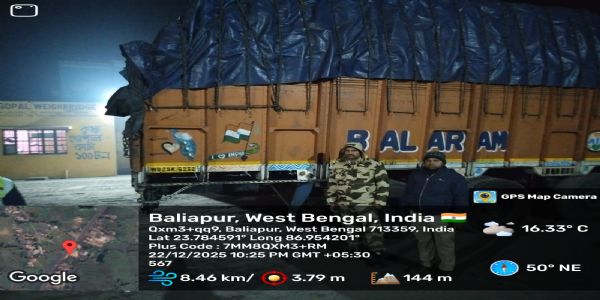 आसनसोल (पश्चिम बर्दवान), 23 दिसंबर (हि.स.)। केन्द्रीय औद्योगिक सुरक्षा बल (सीआईएसएफ) ईसीएल शीतलपुर के यूनिट कमांडर राहुल यादव के निर्देशन में सोमवार रात, सीआईएसएफ मोहनपुर टीम द्वारा ईसीएल सुरक्षा के साथ संयुक्त अभियान चलाया गया। इस दौरान आसनसोल–रुनाकुडाघाट रोड, गणेश कृष्ण कांटा के पास एक ट्रक संख्या (WB -25K/6232) को रोका गया। जिसकी जांच के दौरान ट्रक में लगभग 50 मीट्रिक टन अवैध स्टीम कोयला जब्त किया गया। आगे की कानूनी कार्रवाई के लिए उक्त ट्रक एवं कोयले को बराबनी थाना को सुपुर्द कर दिया गया है। एफआईआर दर्ज करने की प्रक्रिया जारी है।