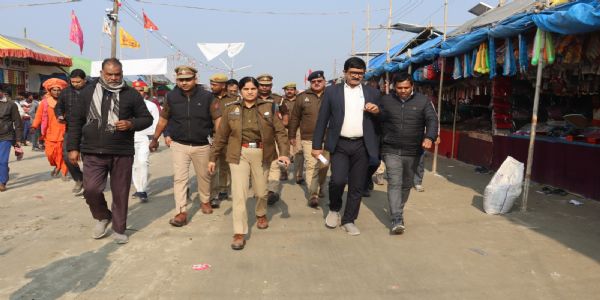 फर्रुखाबाद, 14 जनवरी (हि.स.)। उत्तर प्रदेश के फर्रूखाबाद जिले में जिलाधिकारी एवं पुलिस अधीक्षक ने थाना शमसाबाद क्षेत्रान्तर्गत मकर संक्रांति पर्व के दृष्टिगत ढाईघाट मेले की तैयारियों का निरीक्षण किया। मेला स्थल पर पैदल गस्त कर साफ-सफाई, विद्युत, पेयजल, सुरक्षा व्यवस्था का जायजा लिया। भीड़ प्रबंधन, यातायात, पिकेट ड्यूटी एवं घाट क्षेत्र की सुरक्षा का विस्तृत जायज़ा लिया। सम्बन्धित को आवश्यक दिशा-निर्देश दिए। जिलाधिकारी आशुतोष कुमार द्विवेदी और पुलिस अधीक्षक आरती सिंह ने स्नान घाट पर की गई वेरिकेटिंग का गहनता से निरीक्षण किया। पुलिस अधीक्षक ने मेला ड्यूटी पर तैनात पुलिसकर्मियों को मुश्तैदी से ड्यूटी करने के निर्देश दिए।