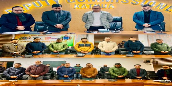 कठुआ, 1 जनवरी । कठुआ डीसी कार्यालय परिसर में गुरूवार को डीसी राजेश शर्मा की अध्यक्षता में सांबा के डिप्टी डिस्ट्रिक्ट इलेक्शन ऑफिसर सुनील अंगराल, जेकेएएस के अचानक निधन पर शोक व्यक्त करने के लिए एक शोक सभा आयोजित की गई।