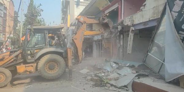 भागलपुर, 11 जनवरी (हि.स.)। भागलपुर में 27 साल से अदालतों के गलियारों में घूम रहा भूमि विवाद आखिरकार जमीन पर उतर आया। महात्मा गांधी रोड स्थित सिविल सर्जन कम्पाउंड में रविवार को जैसे ही प्रशासन का पीला पंजा गरजा पूरे इलाके में हलचल मच गई। कोर्ट के आदेश के बाद एक साथ दो बुलडोजर चले और देखते ही देखते पांच दुकानों को ध्वस्त कर दिया गया। पीला पंजा चलते ही दुकानदारों में हड़कंप मच गया। कोई शटर गिराता नजर आया तो कोई आनन-फानन में सामान समेटता दिखा। चारों तरफ अफरा-तफरी का माहौल बन गया।