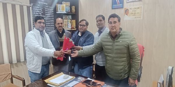 मुरादाबाद, 06 जनवरी (हि.स.)। उत्तर प्रदेश माध्यमिक शिक्षा संघ चेतनारायण गुट का प्रतिनिधिमंडल राज्य कार्यकारिणी सदस्य विमलेंद्र शर्मा के नेतृत्व में मंगलवार को जिला विद्यालय निरीक्षक देवेंद्र कुमार पांडे से मिला। प्रतिनिधिमंडल ने डीआईओएस को नववर्ष की शुभकामनाएं देते हुए जनपद के माध्यमिक विद्यालयों में कार्यरत शिक्षकों की विभिन्न लंबित समस्याओं पर विस्तार से चर्चा कर ज्ञापन साैंपा।