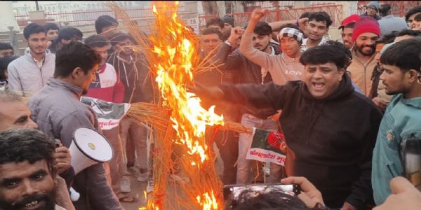 जींद : हिंदू संगठनों ने बांग्लादेश में हिंदुओं पर अत्याचार के खिलाफ फूंका पुतला