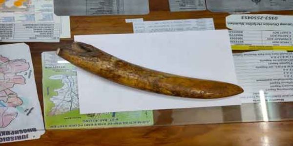 सिलीगुड़ी, 20 दिसंबर (हि. स.)। नेपाल से भारत में चोरी-छिपे वन्यजीवों के अंगों की तस्करी की बड़ी साजिश को समय रहते वनकर्मियों ने नाकाम कर दिया। शनिवार को वन विभाग की घोषपुकुर रेंज की टीम ने नेपाल नंबर की एक लग्जरी कार से करीब एक किलो वजन का हाथी का दांत बरामद किया है। इस मामले में दो तस्करों को गिरफ्तार किया गया है। गिरफ्तार तस्करों के नाम नेपाल निवासी गणेश शाह (21) और सिलीगुड़ी के खालपाड़ा निवासी कमल अग्रवाल (51) है।