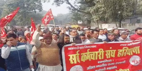 सोनीपत: कर्मचारी मांगों को लेकर विरोध प्रदर्शन के लिए सड़कों पर उतरे